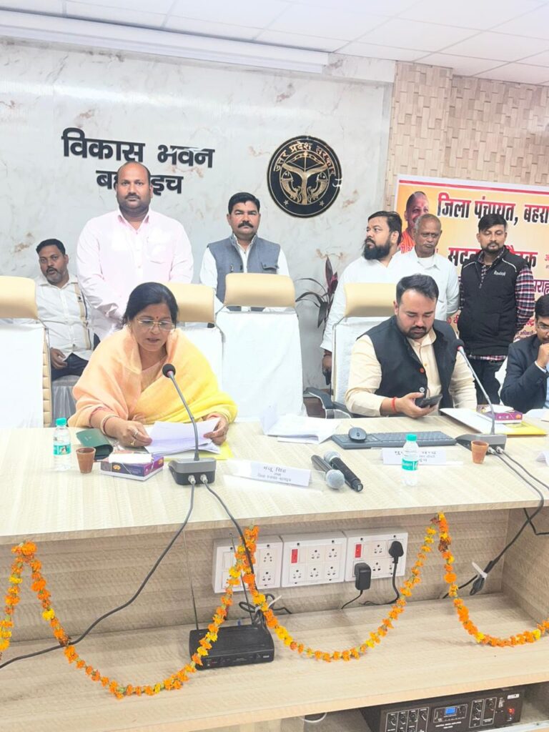 बहराइच । जिला पंचायत अध्यक्ष श्रीमती मंजू सिंह की अध्यक्षता में विकास भवन सभागार में जिला पंचायत बहराइच की सामान्य बैठक सम्पन्न हुई। इस अवसर पर विधायक कैसरगंज आनन्द यादव, जिला पंचायत अध्यक्ष के प्रतिनिधि करणवीर सिंह, प्रमुखगण, जिला पंचायत बहराइच के सदस्यगण, मुख्य विकास अधिकारी मुकेश चन्द्र, मुख्य राजस्व अधिकारी देवेन्द्र पाल सिंह, अपर मुख्य अधिकारी डॉ. चीरेन्द्र बहादुर, जिला पंचायत के अभियन्ता व वित्तीय परामर्शदाता सहित जिला स्तरीय अधिकारीगण उपस्थित रहे।