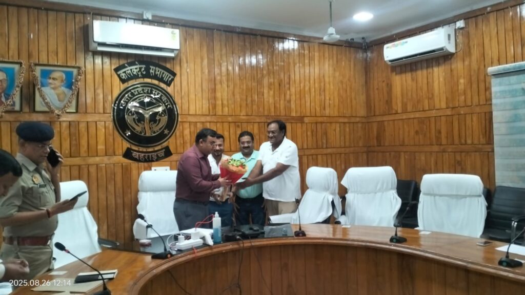बहराइच, 26 अगस्त। उत्तर प्रदेश युवा उद्योग व्यापार मण्डल के पदाधिकारियों ने नवागत जिलाधिकारी अक्षय त्रिपाठी का कलेक्ट्रेट सभागार में स्वागत किया।