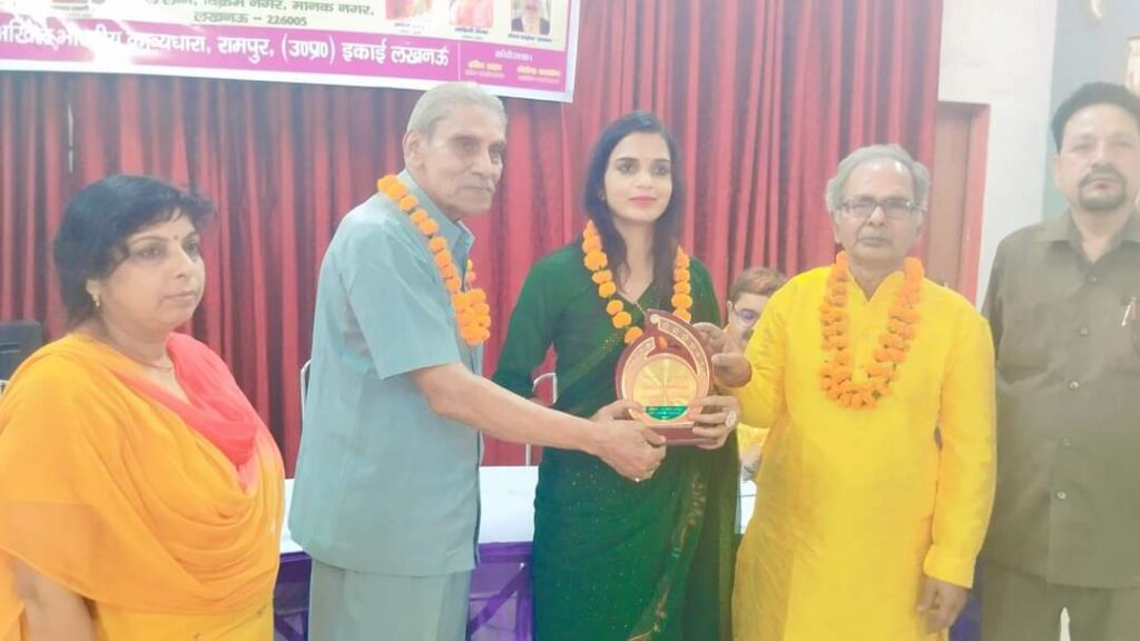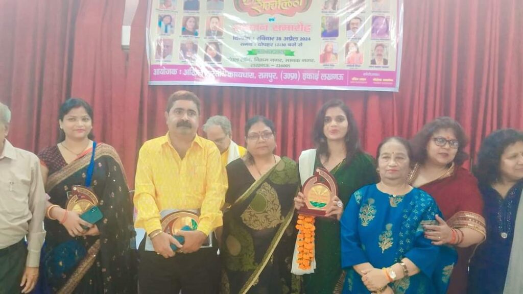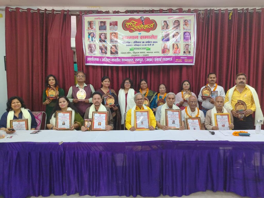 लखनऊ।अखिल भारतीय काव्यधारा, रामपुर (उ०प्र०) की इकाई लखनऊ के तत्वावधान में रविवार को बंसल लॉन,विक्रम नगर,मानक नगर में गीतकार स्व० वीरेंद्र सरल की प्रथम पुण्यतिथि पर हिन्दी साहित्य के बहुमुखी विकास और सक्रियता के लिए विभिन्न जनपदों एवं प्रदेशों के रचनाकारों को सम्मानित किया गया ।